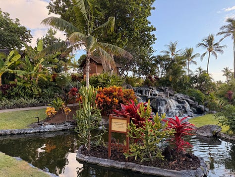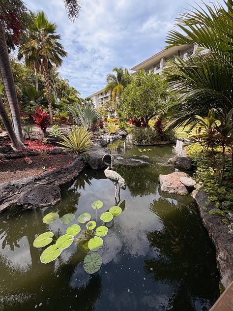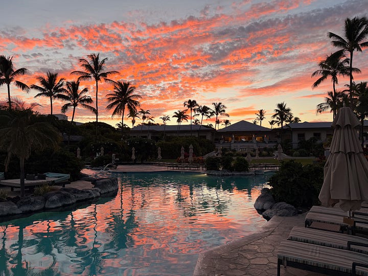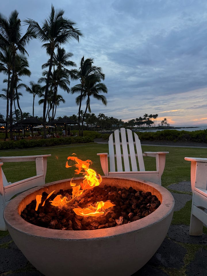 The Fairmont wasn’t trying to be Volcano Village Lodge. It wasn’t supposed to be cozy and tucked away. It was open, spacious, restorative in a completely different way. Our room had a view of the ocean and the golf course. Nothing to write home about, really. The room was nice, but it wasn’t the room that made this place special.