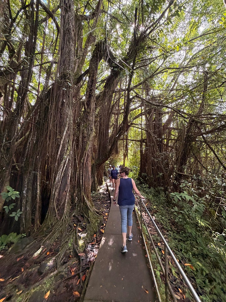We left Volcano in the morning on our anniversary. ChatGPT had laid out the route the night before: north through Hilo, up the Hamakua Coast, with a couple of stops that would turn a straight drive into something worth remembering.
