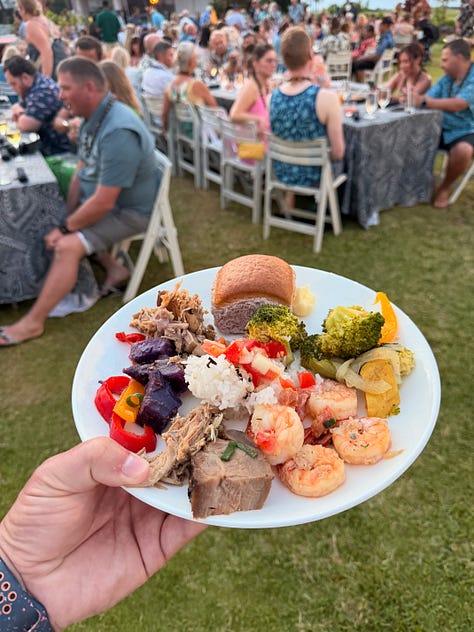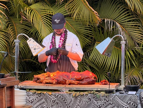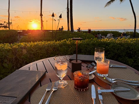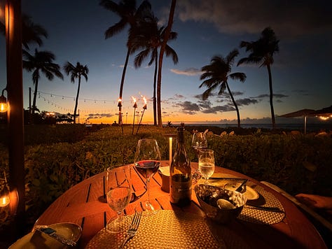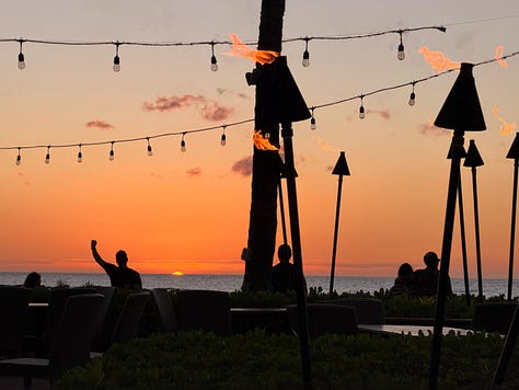 That evening we grabbed a table at the Hale Kai... the poolside bar and restaurant right next to Brown’s Beach House. Another front-row seat for the sunset. Another pū ceremony as the torches were lit. Another perfect end to the day.