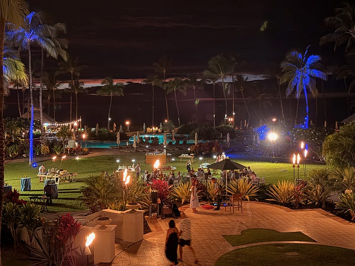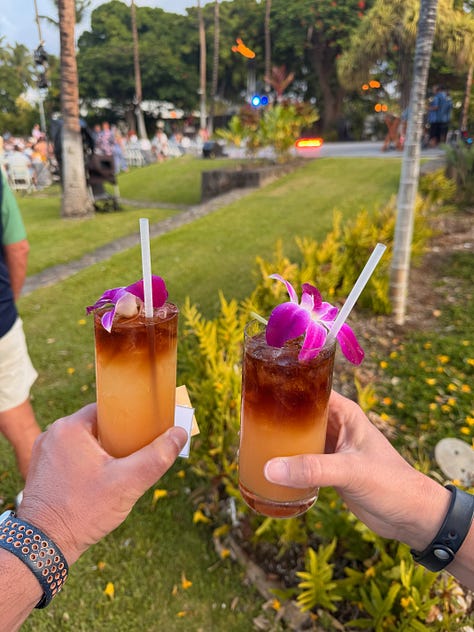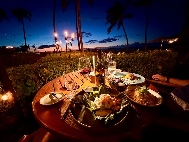 So instead, we had dinner after sunset at the Luana Lounge, which sits on a balcony overlooking the resort grounds. A mai tai. An evening where we didn’t have to think about logistics or schedules or what came next.